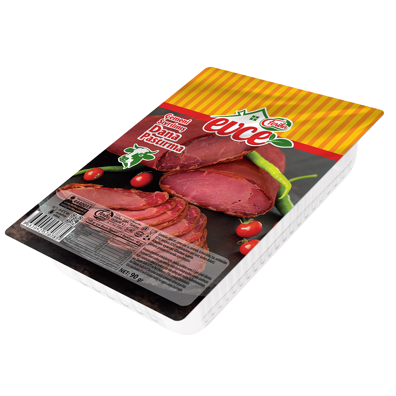 EVCE – Çemeni Sıyrılmış Dilimli Dana Pastırma 90 Gr